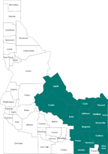 Bannock, Bear Lake, Bingham, Bonneville, Butte, Caribou, Clark, Custer, Fremont, Jefferson, Lemhi, Madison, Oneida, Power, and Teton